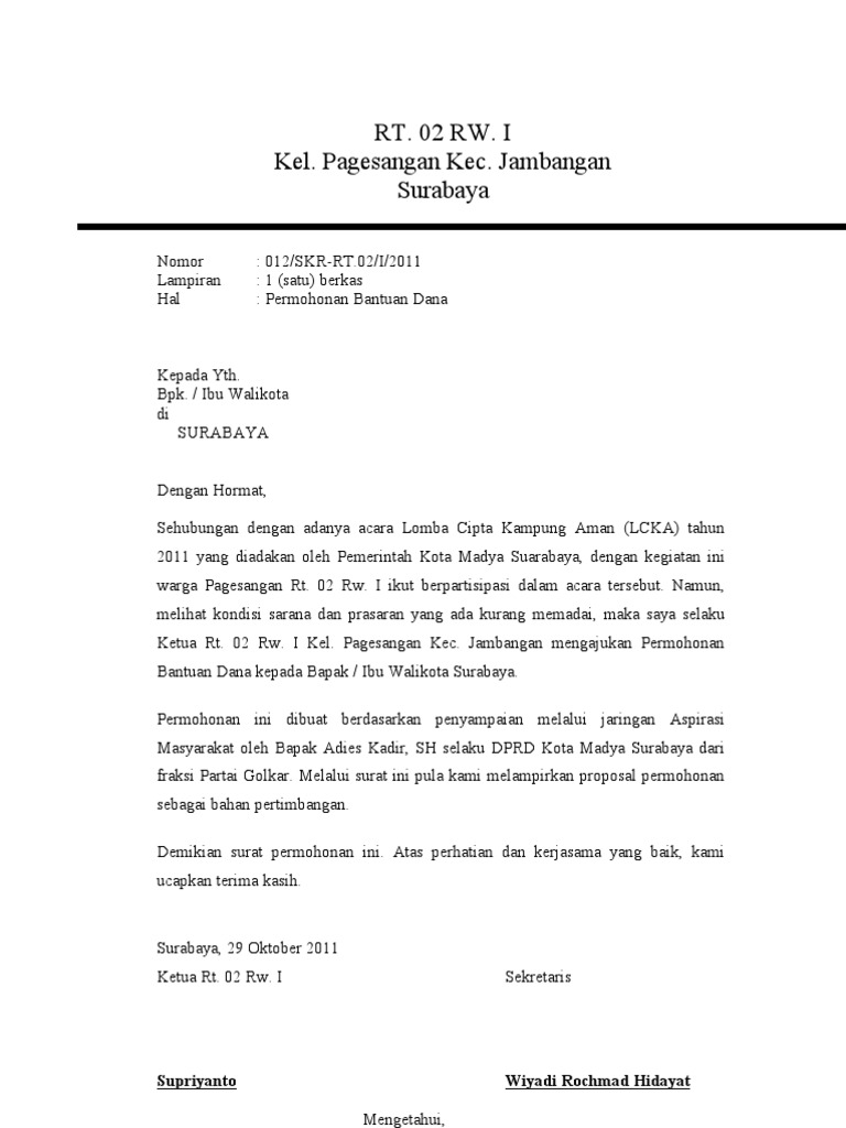 Untuk lebih jelasnya, anda bisa melihat contoh surat.